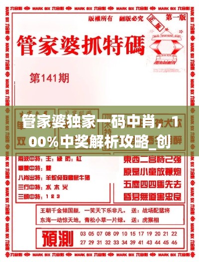 “管家婆一码一肖100中奖”是指通过管家婆系统,结合一码一肖技术,实现100%中奖的预测方案。这一方案的核心在于对大数据的深度挖掘和分析,通过算法模型,准确预测市场走势2024新澳资料免费大全,图库热门解答_游戏版622.57。